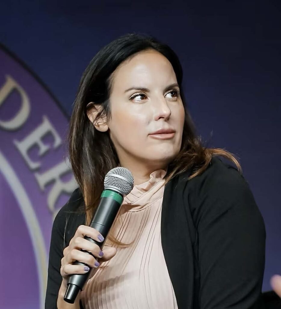 Uno de los momentos más impactantes del briefing llegó cuando Courtney Litvak, sobreviviente de tráfico sexual y exmiembro del Consejo Asesor de Estados Unidos para Combatir el Tráfico Humano, compartió su historia personal.